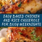 - Bake the Dish: Cover the casserole dish tightly with aluminum foil to keep moisture in and bake in the preheated oven for 45-50 minutes. The chicken should be fully cooked through, and the rice tender.