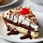 This Banana Split Pie is a delightful no-bake dessert that layers creamy sweetened cream cheese, fresh bananas, juicy crushed pineapple, and fluffy whipped topping in a graham cracker crust. Topped with walnuts, maraschino cherries, and drizzled chocolate syrup, it’s a refreshing and easy treat perfect for summer or anytime you want a nostalgic banana split flavor in pie form.
