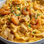 This Cajun Chicken and Shrimp Pasta is a flavorful and creamy dish combining tender chicken breast pieces and succulent shrimp seasoned with bold Cajun spices, tossed with linguine in a rich garlic cream sauce. Ready in just 25 minutes, it’s perfect for a weeknight dinner packed with a punch of Southern-inspired zest.