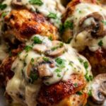 This Cheesy Garlic Butter Mushroom Stuffed Chicken recipe delivers tender chicken breasts filled with a savory blend of sautéed mushrooms, garlic, and mozzarella, baked to perfection and topped with a rich, creamy garlic Parmesan sauce. Perfect for a comforting dinner, it combines juicy chicken with gooey cheese and an aromatic mushroom filling.