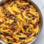 This Cheesy Ground Beef Pasta Skillet is a hearty and comforting one-pan meal that combines savory ground beef, tender pasta, and a rich blend of melted cheeses. Perfect for a quick weeknight dinner, it features a flavorful tomato-based sauce seasoned with Italian herbs and a hint of spice, all cooked together in a single skillet for easy preparation and cleanup.