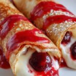 If you’re serving these for a party, slice the chimichangas in half diagonally and fan them out on a platter dusted lightly with cinnamon sugar. Arrange small ramekins of your favorite sauces—like chocolate, caramel, or extra cherry pie filling—for dipping, turning your Cherry Cheesecake Chimichangas Recipe into a festive interactive dessert.