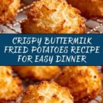 This Chicken Fried Potatoes recipe features thinly sliced Russet or Maris Piper potatoes marinated in a flavorful buttermilk and spice mixture, then coated in a seasoned flour batter and deep-fried to a crispy golden perfection. Perfect as a crispy side dish or snack, these fries deliver a delicious blend of spices and a satisfying crunch.