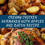 Chicken Normandy is a classic French dish featuring tender browned chicken pieces simmered in a rich sauce made from brandy, dry cider, chicken stock, bacon, and aromatic herbs. Finished with creamy crème fraîche and caramelized apples, this comforting casserole offers a delightful balance of savory and fruity flavors, perfect for a cozy family meal.