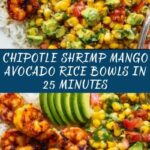 A vibrant and flavorful chipotle shrimp rice bowl topped with a fresh mango and avocado salad. This quick and easy recipe features spicy, garlicky shrimp cooked to perfection and paired with a sweet and tangy mango avocado salad, served over steamed rice and garnished with roasted corn. Perfect for a colorful weeknight dinner packed with bold flavors and fresh ingredients.
