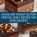 These Chocolate Caramel Peanut Butter Pretzel Bars offer a perfect balance of salty and sweet flavors with a crunchy pretzel base layered with a rich peanut butter caramel and topped with smooth chocolate ganache. Easy to prepare and no-bake after assembly, they make a delightful treat for any occasion.