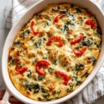 This Creamy Chicken and Veggie Casserole is a hearty and comforting dish featuring tender chicken breast pieces combined with sautéed bell peppers, onions, mushrooms, and spinach in a rich, creamy mushroom sauce. Baked to perfection, it makes a nutritious and satisfying meal that pairs wonderfully with noodles or rice.