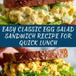 A quick and easy egg salad sandwich recipe perfect for a nutritious and satisfying meal. This classic sandwich combines creamy egg salad with fresh bread and optional crunchy and fresh toppings like lettuce, tomato, and pickles for added texture and flavor.