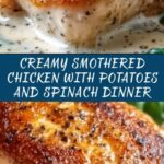 Try serving this Creamy Smothered Chicken with Spinach, Potatoes, and Mushrooms Recipe in individual cast-iron skillets for a rustic, cozy vibe that feels restaurant-worthy. Or plate it family-style in a large serving dish to invite everyone to dig in together.