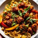 This Crispy Garlic Chicken Drunken Noodles recipe offers a deliciously savory and slightly spicy Thai-inspired dish featuring crispy chicken, wide rice noodles, and a flavorful sauce made with tamari, sweet chili sauce, and aromatic garlic. Ready in just 20 minutes, it’s a quick and satisfying meal perfect for weeknight dinners.