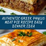 A savory Greek Phyllo Meat Pie featuring ground beef or lamb, aromatic spices, and creamy feta cheese wrapped in buttery, flaky phyllo dough. This classic Mediterranean main course offers a delicious blend of tender meat filling and crisp pastry, perfect for a comforting family dinner or special occasion.