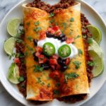 These Ground Turkey Black Bean Enchiladas are a flavorful and hearty Mexican-inspired dish featuring seasoned ground turkey, black beans, and corn wrapped in flour tortillas, topped with a rich enchilada sauce and melted Mexican blend cheese. Baked to perfection, this family-friendly meal offers a balanced blend of protein and vegetables, perfect for dinner.