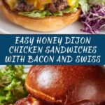 - Assemble the Sandwiches: Slice the cooked bacon into thirds. On the bottom half of each bun, place one grilled chicken cutlet, top with a slice of Swiss cheese, broken pieces of bacon, and drizzle with the honey Dijon sauce prepared earlier. Add lettuce and tomato slices if desired. Cover with the bun top.