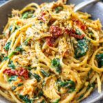 If you’re searching for a comforting yet elegant pasta dish that bursts with fresh flavors, the Linguine with Spinach and Sun-Dried Tomato Cream Sauce Recipe is guaranteed to become your new favorite. This recipe combines tender linguine coated in a luscious, creamy sauce made from sun-dried tomatoes and fresh spinach, delivering a perfect balance of savory, tangy, and slightly sweet notes. The velvety texture of the cream sauce mingles beautifully with the vibrant greens and the subtle heat from red pepper flakes, making it a delightful meal that’s ready in just about 25 minutes. Whether you’re cooking for a cozy night in or impressing guests, this recipe always brings big smiles to the table.