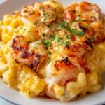 This creamy and decadent Lobster Mac and Cheese combines tender corkscrew pasta with a rich, smoky cheddar and mozzarella cheese sauce, studded with succulent chunks of cooked lobster meat. Topped with buttery panko breadcrumbs and baked to golden perfection, this dish is a luxurious twist on a classic comfort food, perfect for special occasions or an indulgent weeknight meal.