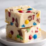 A decadent and colorful treat featuring layers of homemade M&M cookie dough and creamy white chocolate fudge, perfect for parties or as a special dessert. This no-bake fudge combines the best of cookie dough and fudge with a delightful crunch from mini M&Ms throughout.
