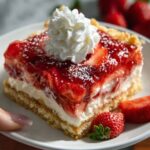 Combine softened cream cheese, powdered sugar, and vanilla extract in a bowl and beat them until the mixture is smooth and creamy. This fluffy layer adds a tangy richness that balances the sweet strawberry flavors beautifully.