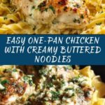 A comforting and easy one-pan chicken recipe served with creamy buttered egg noodles. Tender seared chicken breasts are cooked and then combined with garlic-infused creamy sauce and tender egg noodles, all prepared in a single skillet for minimal cleanup and maximum flavor.