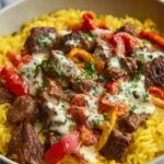 To reheat, warm gently in a skillet over low heat or microwave in short bursts, stirring occasionally so the steak stays tender and the rice heats evenly. A splash of broth or water can help revive the dish if it feels a bit dry.