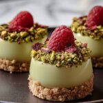 Delight in these elegant Pistachio & Raspberry Cheesecake Domes featuring a creamy pistachio mousse, a luscious raspberry gelée center, and a crunchy biscuit base. Perfect for a no-bake, French-inspired dessert that combines rich flavors and textures into individual mini cheesecakes.