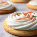 - Frost the Cookies: Once the cookies are fully cooled, generously frost each cookie with the cream cheese frosting. Optionally, decorate with pumpkin-colored sprinkles or piped designs for a festive presentation.