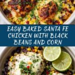 This Santa Fe Chicken recipe is a flavorful and easy-to-make meal featuring tender chicken breasts topped with a vibrant mix of black beans, corn, and salsa, baked to perfection and finished with melted Mexican cheese. Perfect for a weeknight dinner and served with optional garnishes like sour cream, avocado, and lime wedges.