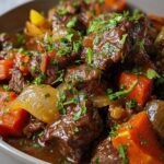 This hearty Pepper Steak recipe is perfect for a comforting slow-cooked meal. Tender beef sirloin strips are seared and then slow-cooked with green bell peppers, onions, stewed tomatoes, and flavorful seasonings to create a savory, rich dish that’s ideal served over rice or noodles.