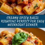 Spicy Basil Rigatoni is a creamy and flavorful Italian-American pasta dish combining tender rigatoni with a rich tomato and basil sauce, enhanced by a touch of heat from red pepper flakes and finished with Parmesan cheese. This easy weeknight meal delivers the perfect balance of spicy, creamy, and fresh flavors.