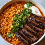 Spicy Korean Ramen Beef is a flavorful and easy-to-make dish combining tender marinated beef, sautéed vegetables, and spicy Korean ramen noodles in a rich, savory broth. This recipe features the iconic Korean Shin Ramyun noodles and a blend of traditional Korean seasonings like gochujang and gochugaru, perfect for a satisfying and warming meal in just 45 minutes.