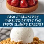 Absolutely! While fresh strawberries offer the best flavor and texture, frozen berries work well too. Just thaw and drain excess liquid before using to avoid a soggy cobbler.