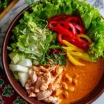 Garnishing is the fun part where you get to personalize your dish. Fresh Thai basil leaves add an aromatic freshness that perfectly complements the curry’s heat and sweetness. Bright lime wedges are essential—they’re there to be squeezed generously over each serving to introduce a lively citrus note. For a little crunch, toasted cashews or sliced red chili can be sprinkled on top as well.