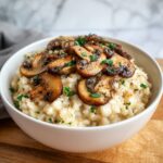 This creamy and flavorful Mushroom Risotto is a comforting Italian classic perfect for a cozy dinner. Featuring a medley of white and baby bella mushrooms, arborio rice cooked slowly in chicken stock, and finished with butter and parmesan cheese, this recipe delivers rich taste and perfect texture in about 35 minutes.