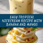 Brighten your Tropical Nicecream Recipe with fresh, fun toppings. A sprinkle of shredded coconut, a few fresh mint leaves, or chopped tropical fruits like kiwi or passionfruit take it to the next level. Even a handful of crunchy granola can add a delightful texture contrast.